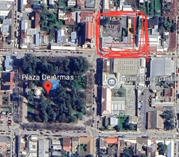 Se encuentra a pasos de plaza de Molina en comuna de Curicó, pleno centro cívico y comercial de Molina, Municipalidad, Registro Civil, Conservador de Bienes Raíces, Terminal de Buses.